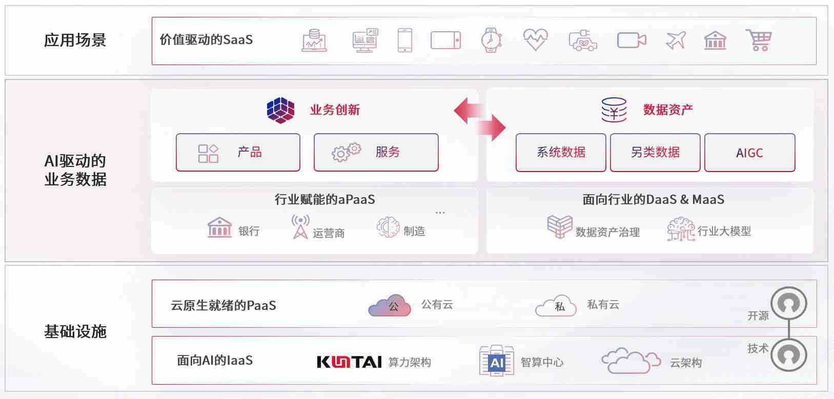 数字时代,,,,围绕企业数字化转型的关键要素,,,,ABPAY钱包数码开创性的提出数云融合战略和技术体系框架,,,,着力在云原生、、、数字原生、、、、AI原生和信创产业上架构产品和服务能力,,为处在不同数字化转型阶段的快消零售、、、、汽车、、、金融、、医疗、、政企、、、教育、、、运营商等行业客户提供泛在的敏捷IT能力和融合的数据驱动能力,,构建跨界融合创新的数字业务场景和新业务模式,,,,助力企业级客户建立面向未来的核心能力和竞争优势,,全面推动社会的数字化、、、智能化转型升级。。